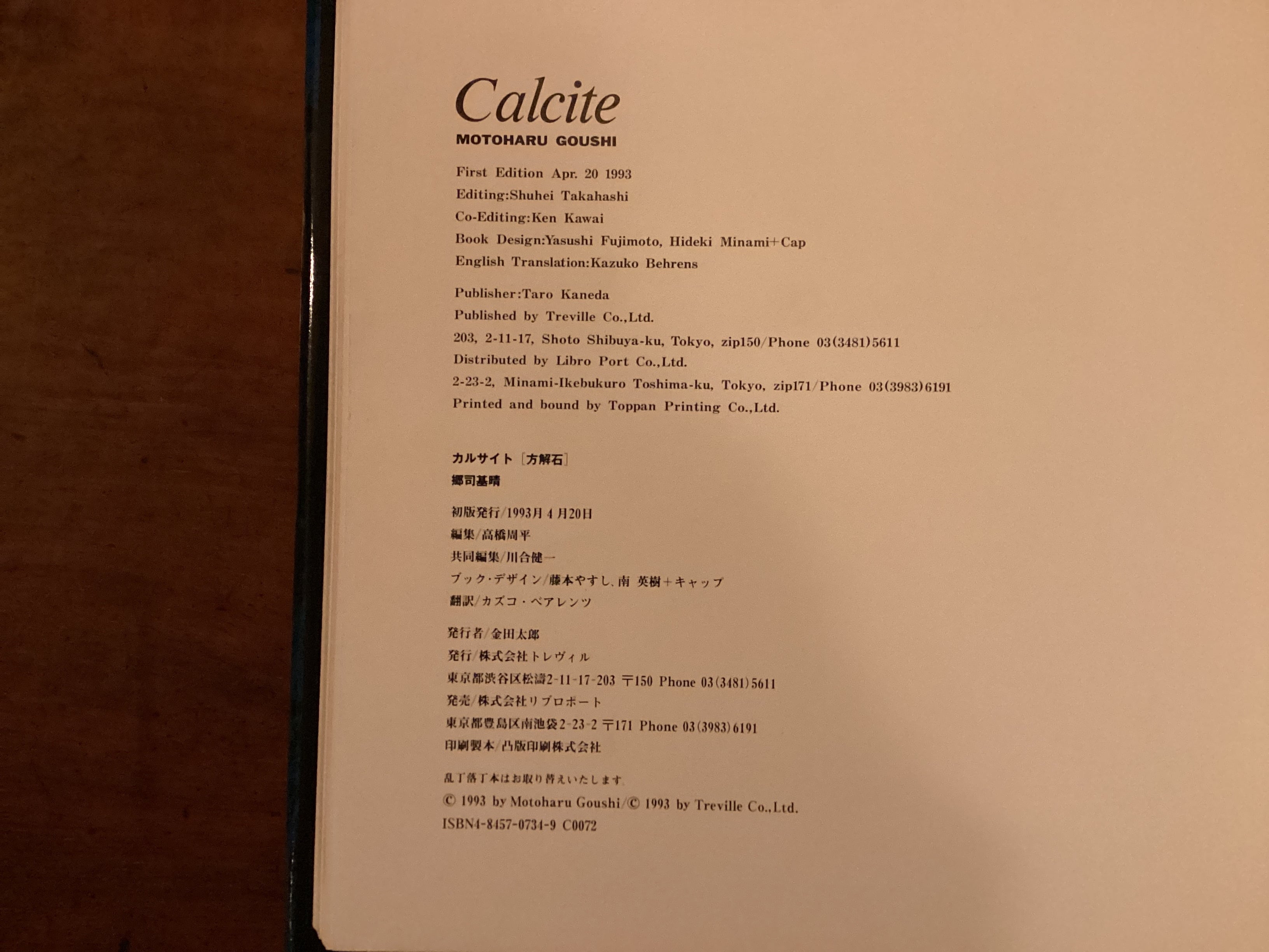 『Calcite』 郷司基晴 TREVILLE 1993年(初版) -サイン入り 初版 ○状態 カバーややヨレあり その他美 ○発送 クリックポスト