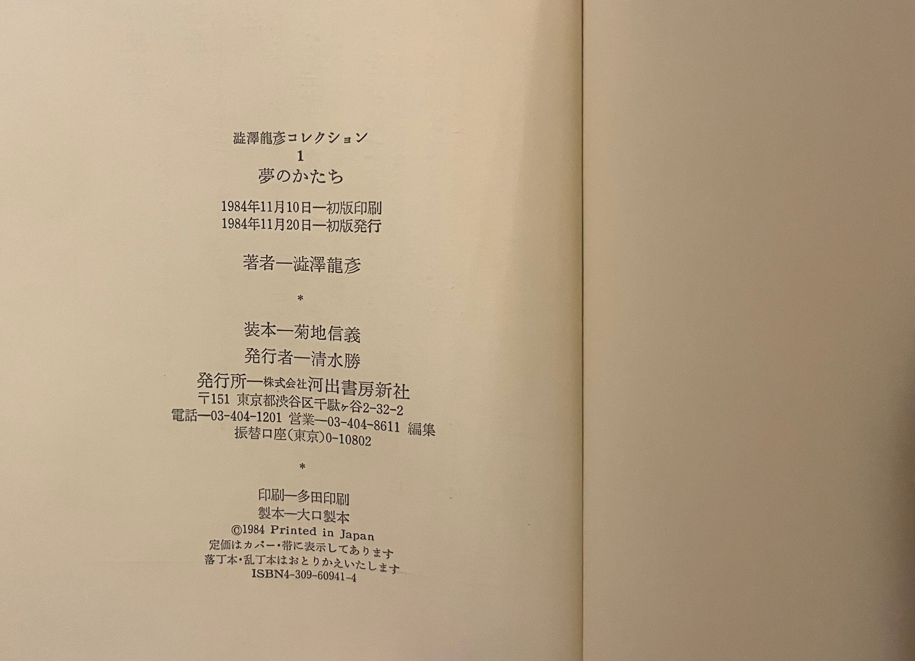 澁澤龍彦コレクション『夢のかたち』初版