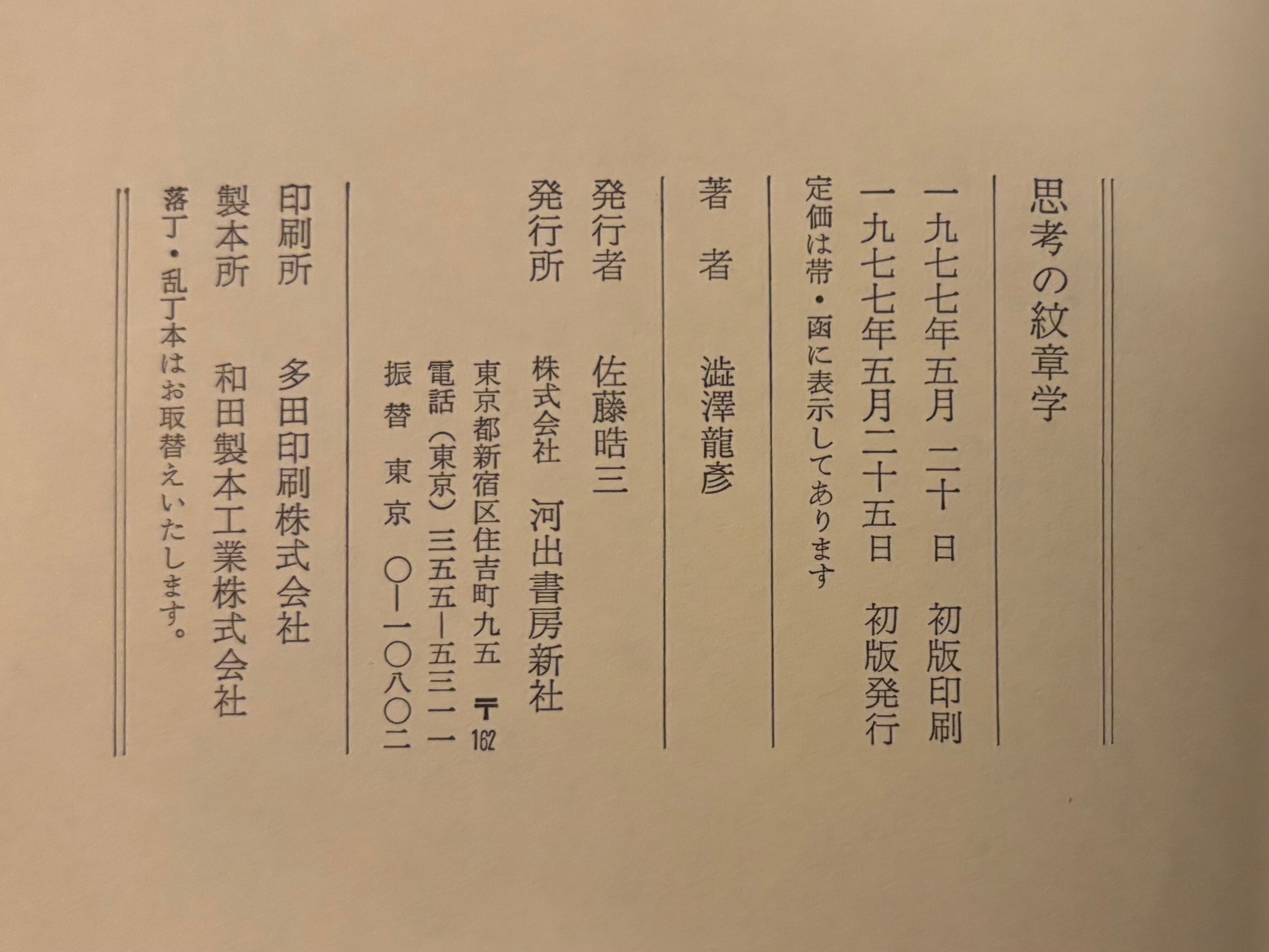 澁澤龍彦『思考の紋章学』初版