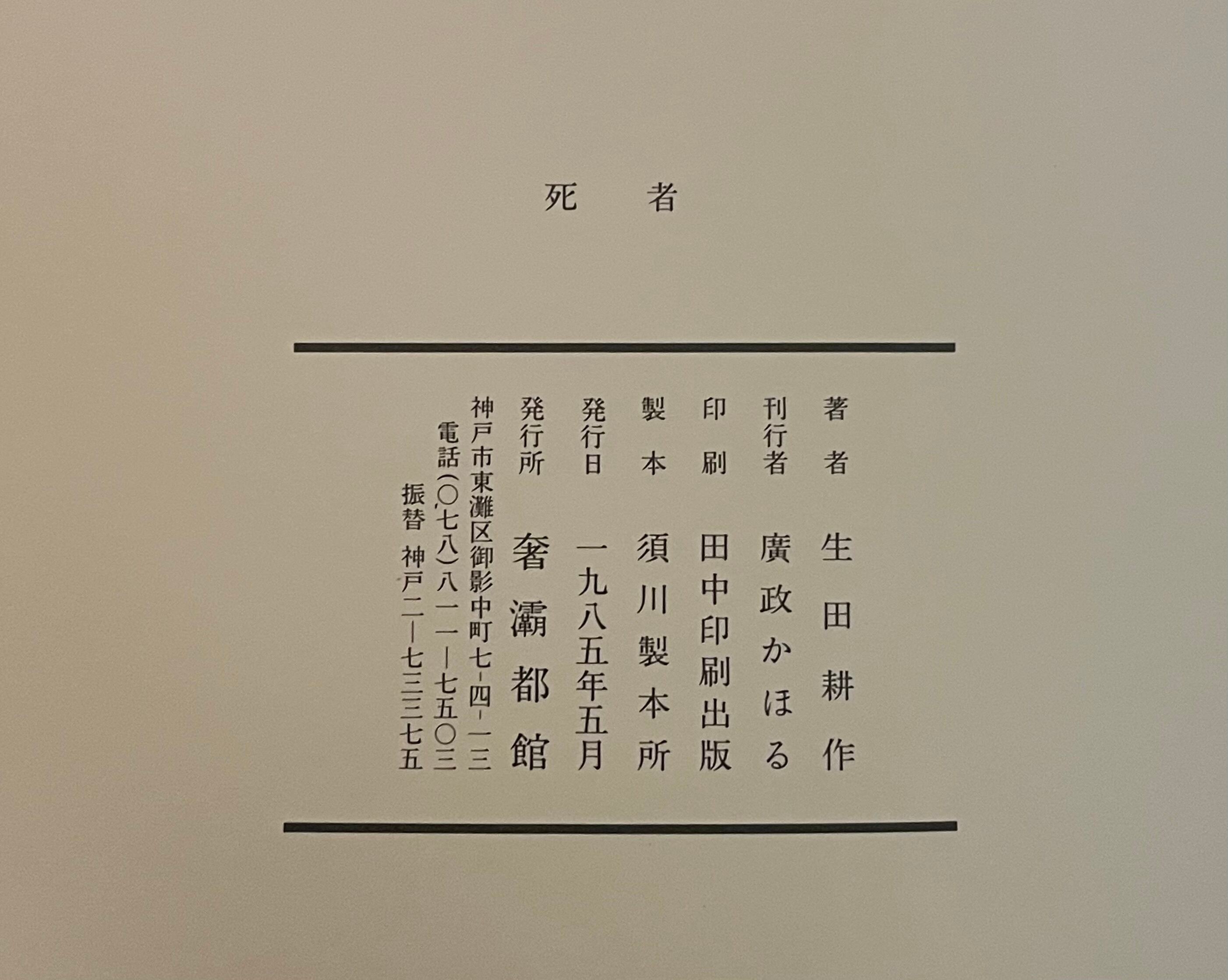 生田耕作訳『死者』初版 | アスタルテ書茶房
